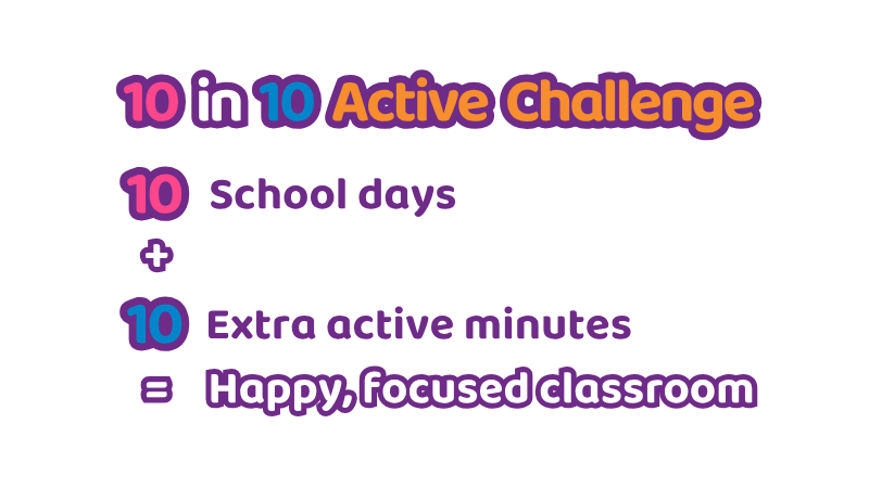 The 10 in 10 Active Challenge is a short whole-school challenge where children add 10 minutes of higher-energy movement each day for 10 school days.